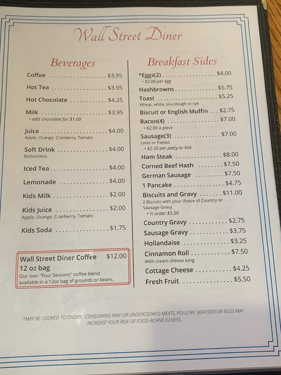 With friendly staff dedicated to providing great service and a clean, welcoming environment, Wall Street Diner is more than just a place to eat – it’s a community hub where comfort food meets exceptional hospitality.
